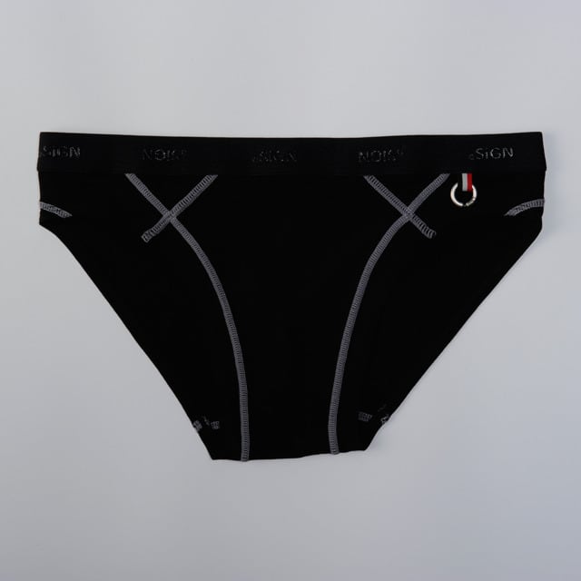 それぞれの生地カラーに配色のステッチをオシャレに効かせたビキニは、 一見競泳パンツのような切り替えステッチがデザインポイント。