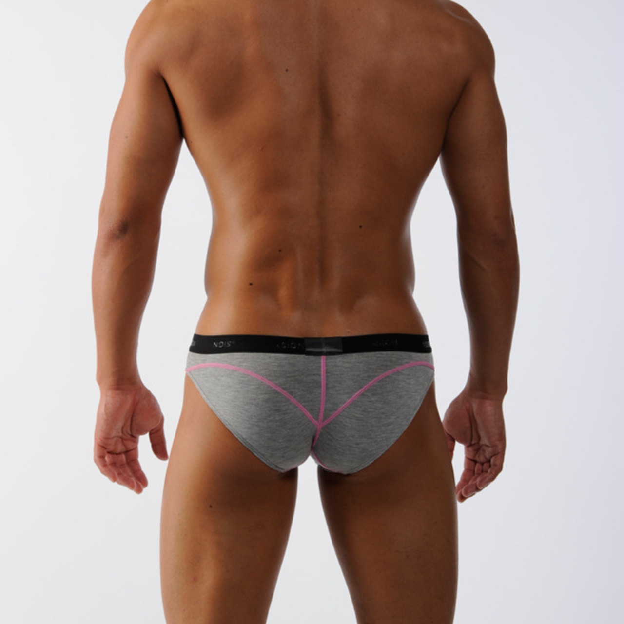 それぞれの生地カラーに配色のステッチをオシャレに効かせたビキニは、 一見競泳パンツのような切り替えステッチがデザインポイント。
