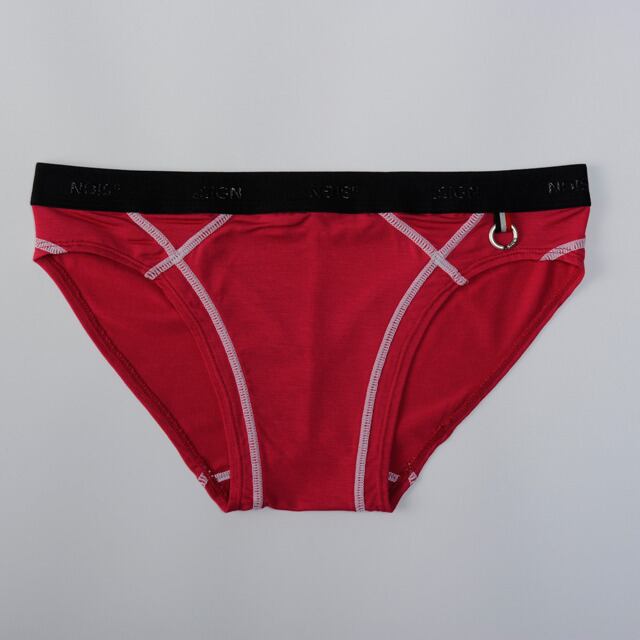 それぞれの生地カラーに配色のステッチをオシャレに効かせたビキニは、 一見競泳パンツのような切り替えステッチがデザインポイント。