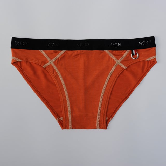 それぞれの生地カラーに配色のステッチをオシャレに効かせたビキニは、 一見競泳パンツのような切り替えステッチがデザインポイント。