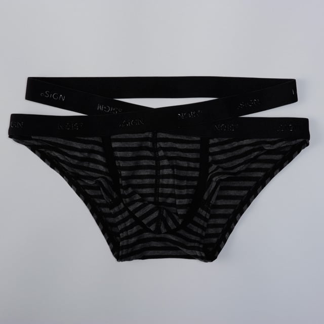 ウエストのゴムをフロントでクロスさせ、バックのゴムを2重に見せるデザインが特徴のビキニです。