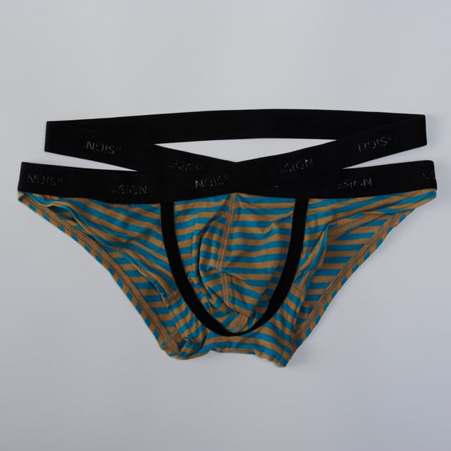 ウエストのゴムをフロントでクロスさせ、バックのゴムを2重に見せるデザインが特徴のビキニです。