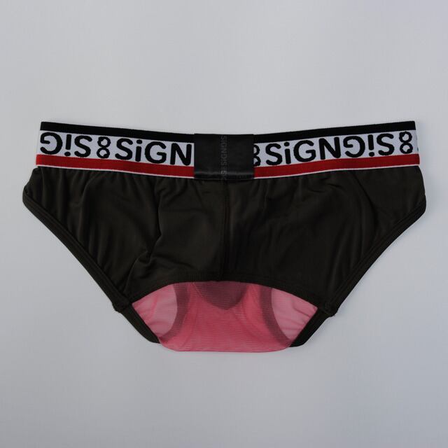 ポリエステルのメッシュ素材でクロッチ(股)のパーツを大きめに切り替えたデザインも、 チラリと除く配色のカラーがオシャレなアクセントに。