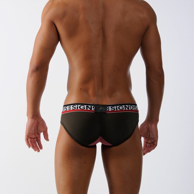 サイドの幅をビキニタイプより若干もたせた、ビキニタイプに近いハーフブリーフタイプで、 しっかりとしたウエストゴムと相まってジャストなローライズ感を楽しめます。