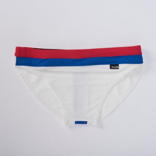 スイムウェアにありがちなロゴや数字や柄などのプリント表現は排除して、シンプルで遊び心のある大人意識のスイムウェアです。