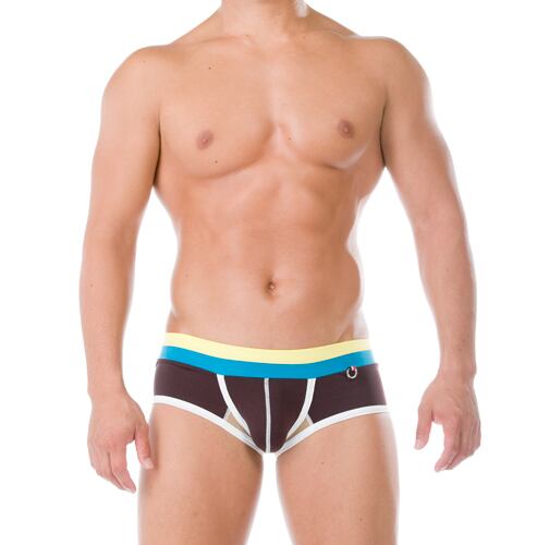ブラウンはウエスト部分のトップがレモンイエロー、アンダーをサックスブルーで切り替え